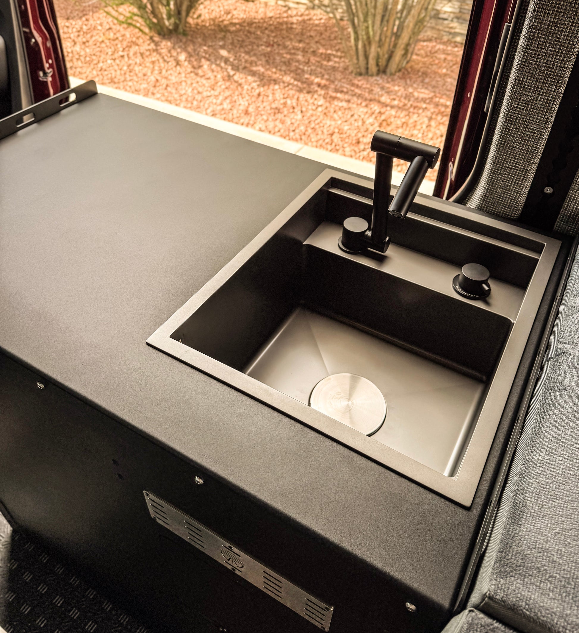The Sliding Door Galley combines practical design with rugged craftsmanship to give you a reliable kitchen solution that fits your adventure lifestyle. Its modular, space-conscious layout provides everything you need for cooking, cleaning, and storage - without the bulk or weight of traditional cabinetry. Whether you’re building out a Sprinter van, Transit van, or custom camper conversion, this galley delivers maximum functionality in a sleek, durable package.